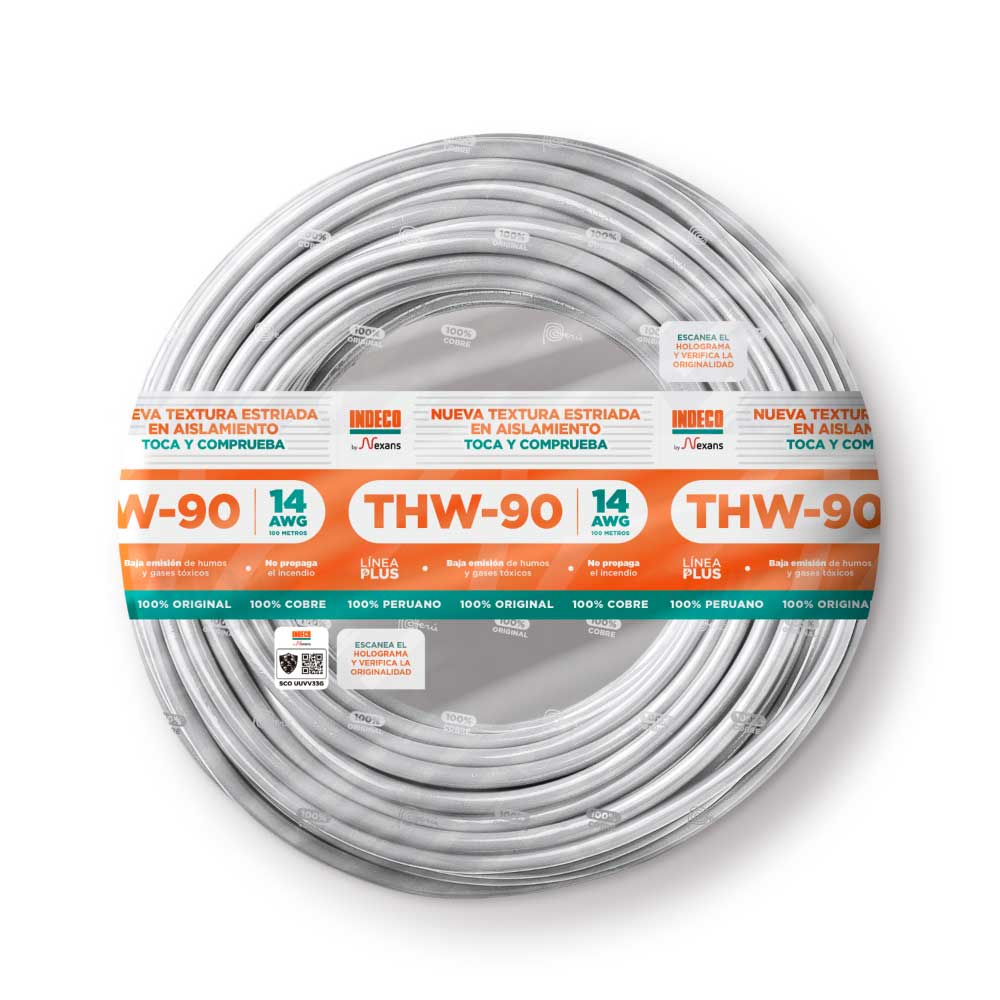 - Cable THW-90 +plus 450/750 V 14 AWG Blanco 100m Indeco.