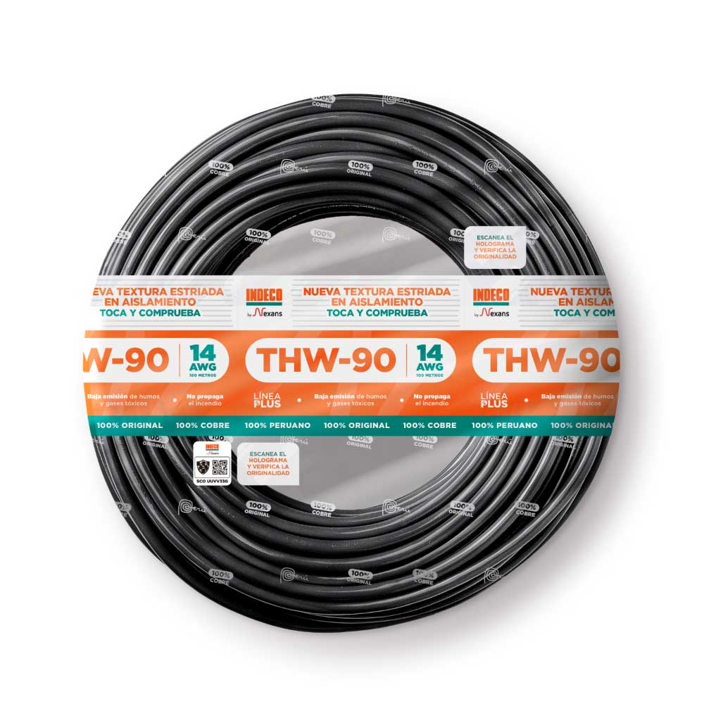 - Cable THW-90 +plus 450/750 V 14 AWG Negro 100m Indeco.